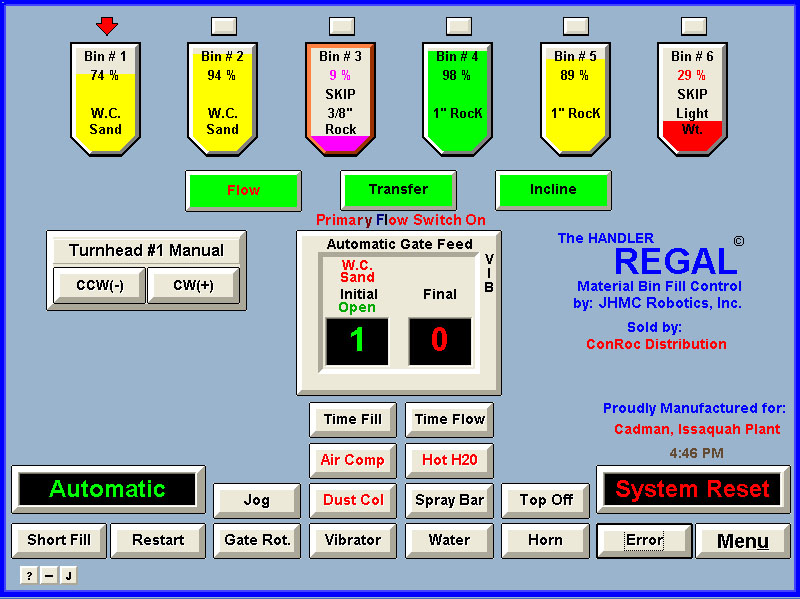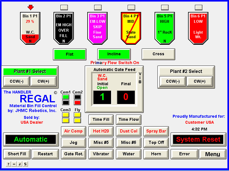 HANDLER REGAL MATERIAL BIN CONTROL MONITORING AND CONTROL SCREEN (SINGLE PLANT) HANDLER REGAL MATERIAL BIN CONTROL MONITORING AND CONTROL SCREEN (DUAL PLANT)